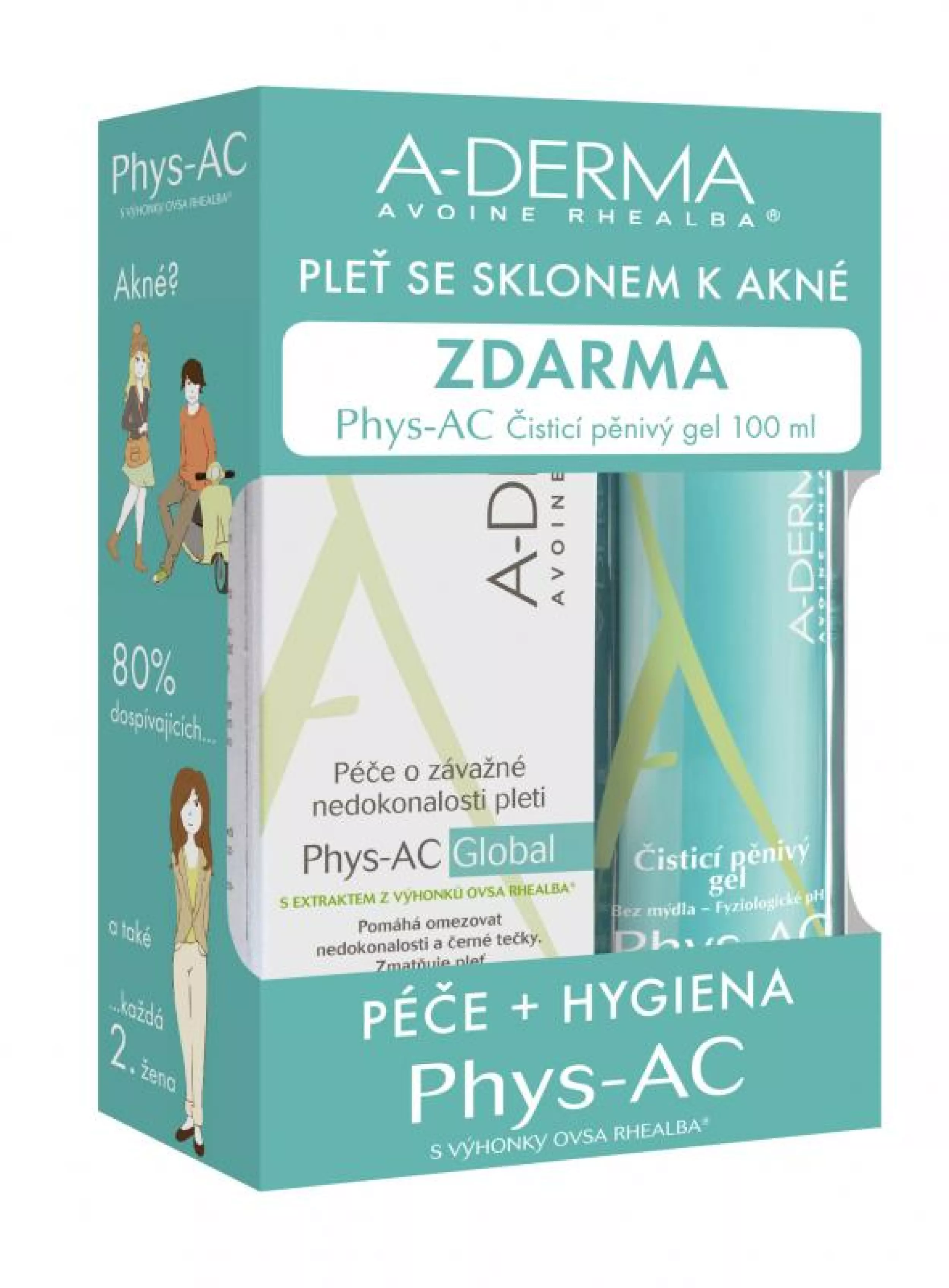 1. Phys-AC Global (40 ml) – komplexe Hautpflege, die überschüssigen Talg reduziert, die Anhaftung von Bakterien begrenzt, beruhigt und zur Reduzierung von durch Reizungen verursachten Rötungen beiträgt, das Peeling fördert und die Poren reinigt. Darüber hinaus verleiht die ausgleichende Feuchtigkeitskomponente der Haut ein angenehmes Gefühl und stellt ihr Gleichgewicht wieder her. Hautunreinheiten verschwinden; Die Haut wird langfristig mit Feuchtigkeit versorgt und mattiert. Phys-AC Global hat eine frische, leichte und angenehme Gel-Creme-Textur, die schnell einzieht und die Haut mattiert. Dezent parfümiert.