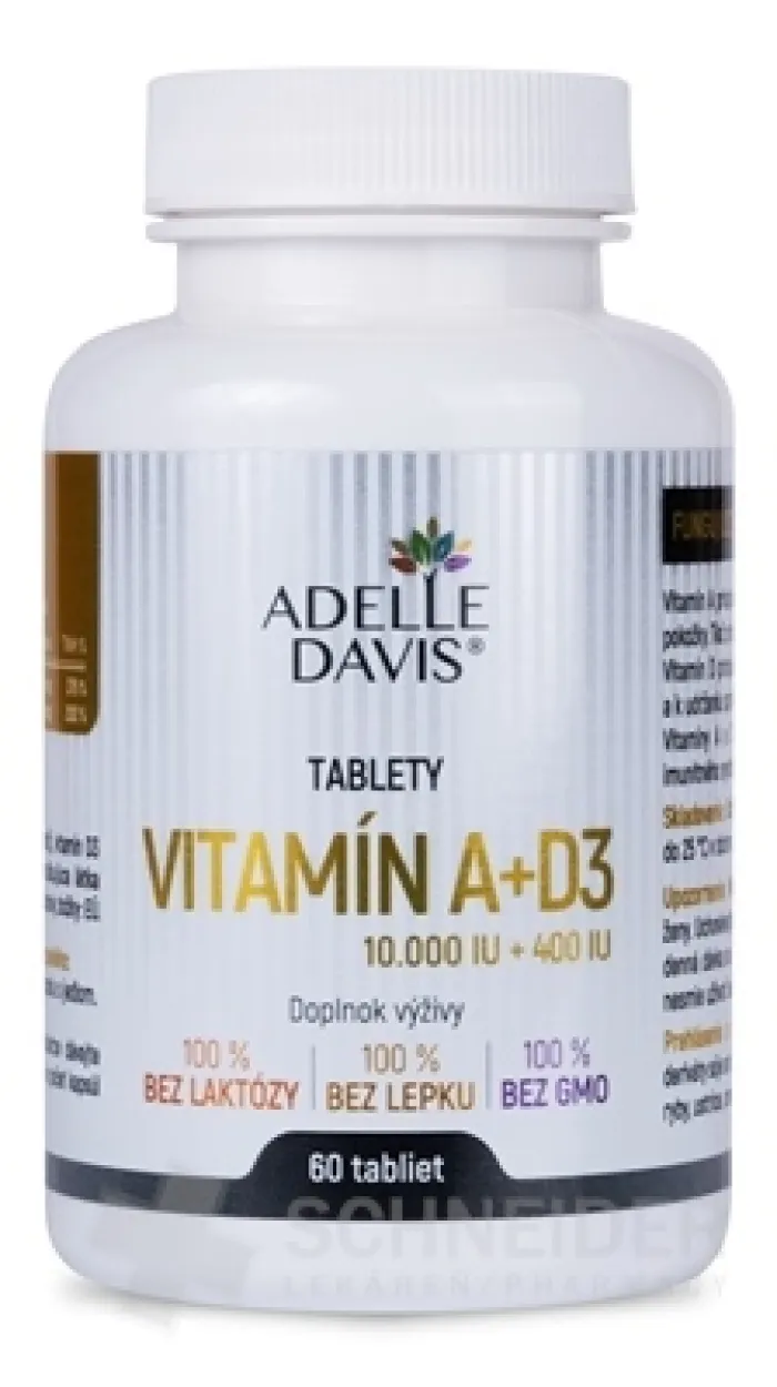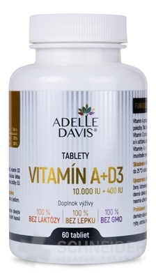 Nahrungsergänzungsmittel mit Vitamin A (10.000 IE) und Vitamin D3 (400 IE) in Tablettenform.
