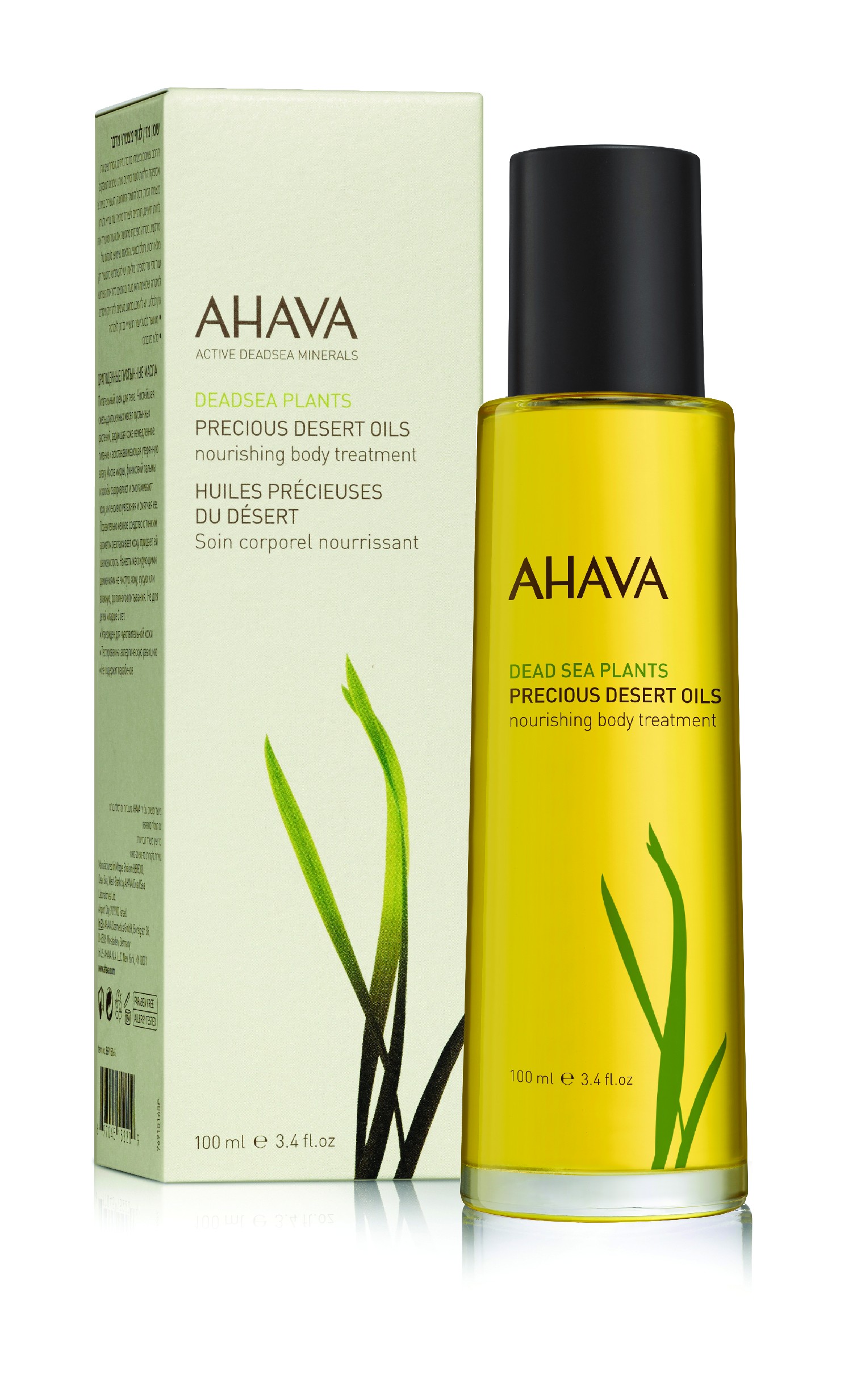 Das kostbare Wüsten-Körper- und Haaröl enthält den patentierten Inhaltsstoff Osmoter™, eine exklusive Mischung aus Mineralien aus dem Toten Meer, wertvollen Ölen aus Wüstenpflanzen und anderen natürlichen Inhaltsstoffen, die die Haut intensiv mit Feuchtigkeit versorgen, nähren, mineralisieren und sie mit einem Schleier natürlicher, luxuriöser Wüste umhüllen Duft.