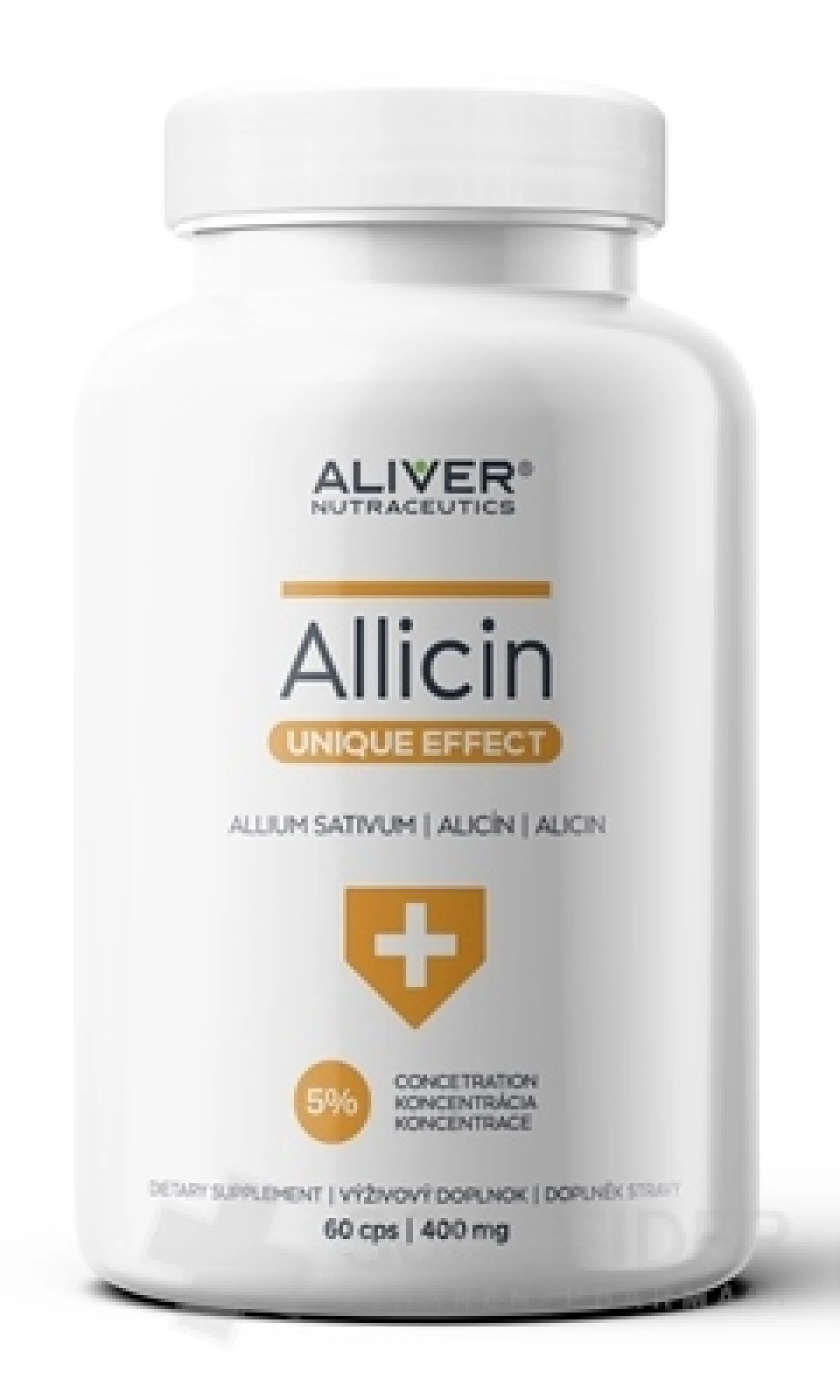 Zutaten: 250 mg Allicin (5 % Konzentrat) aus Knoblauch ( Allium sativum ), 150 mg Maltodextrin, Gelatinekapsel (HPMC).