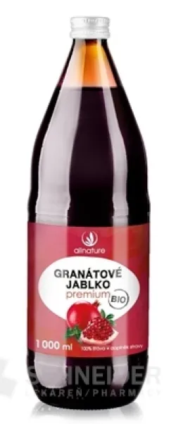 100 % Granatapfelsaft versorgt den Körper mit den Vitaminen B und C, Granatapfelsaft in Bio-Qualität wird ohne weitere Zusatzstoffe hergestellt. Natürlicher Granatapfelsaft ist eine Quelle für Aminosäuren, Mineralien in Form von Eisen, Kalzium und Phosphor.