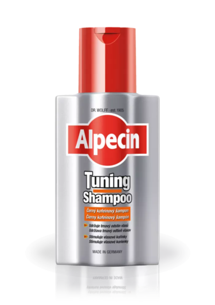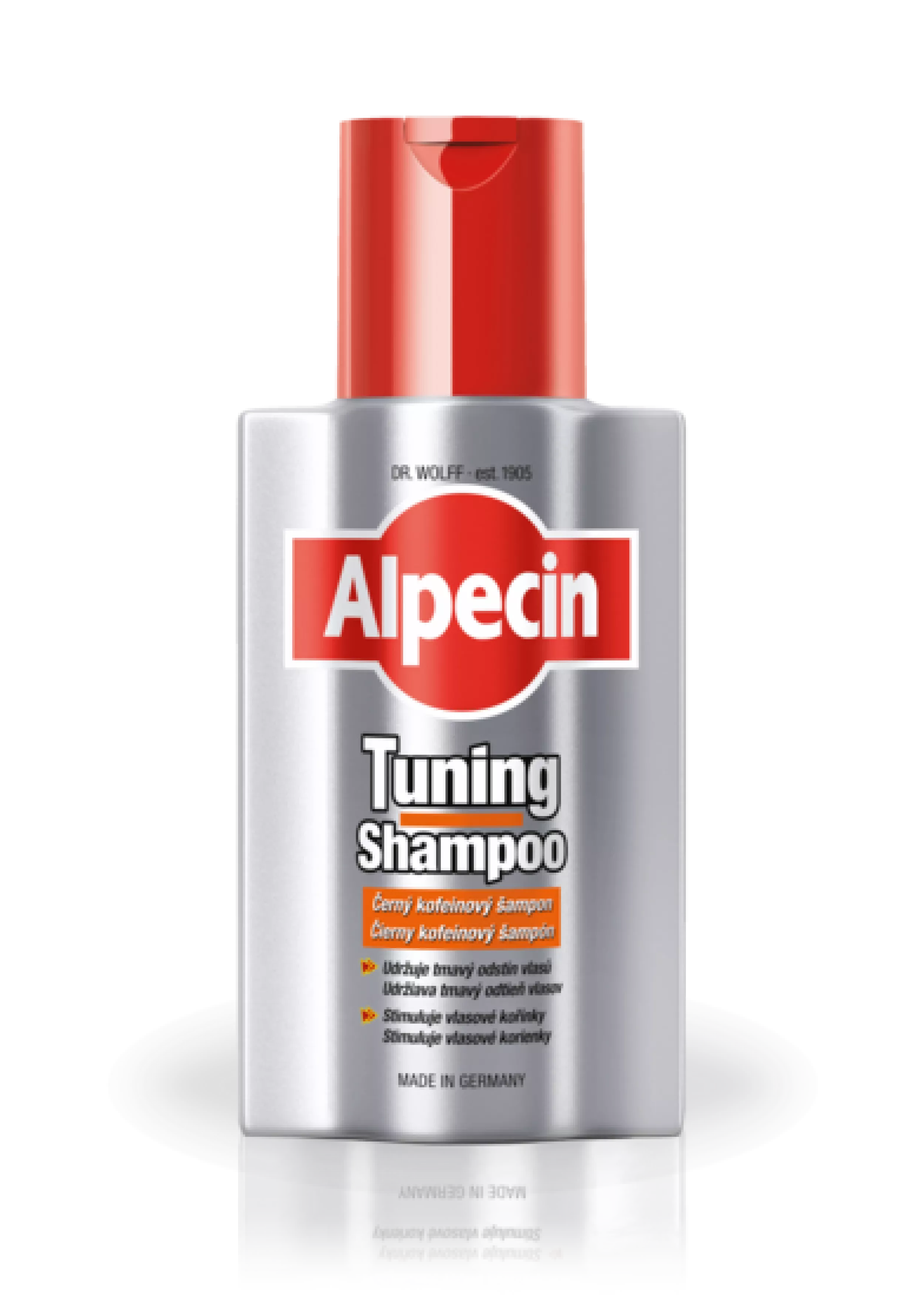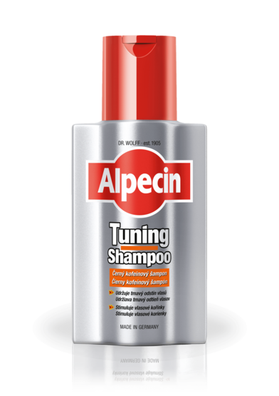 Haar-Tuning-Shampoo bei jeder Wäsche – hält dunkles Haar dunkel und beugt erblich bedingtem Haarausfall vor. Farbpigmente beleben den natürlichen Farbton dunkelblonder, brauner und schwarzer Haare. Sie mattieren die ersten grauen Haare. Der Farbeffekt ist unauffällig, er verstärkt sich erst bei regelmäßiger Anwendung und wird beim Waschen mit herkömmlichen Shampoos nach und nach ausgewaschen. Beim Haarewaschen dringt Koffein bis zu den Haarwurzeln vor, wo es nach 120 Sekunden Wirkungszeit sichtbar wird und so erblich bedingtem Haarausfall vorbeugt.