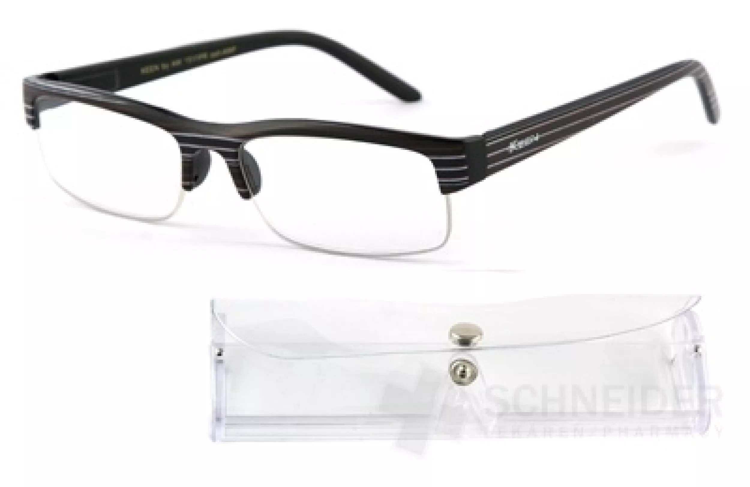 Lesebrille in Dioptrien +2,00 FLEX schwarz mit Streifen und Etui.
