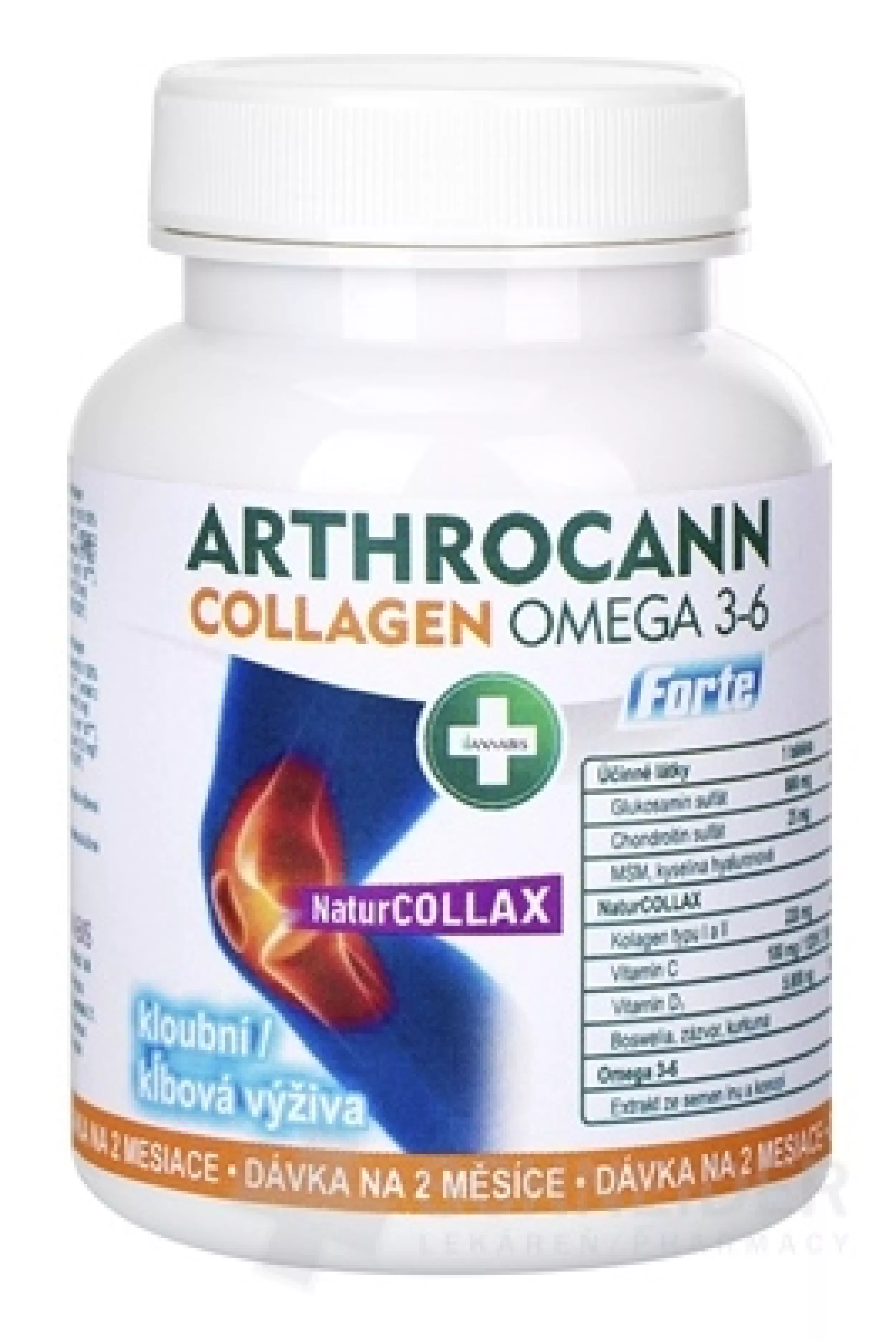Das Nahrungsergänzungsmittel enthält den Natur Collax-Komplex (zertifiziertes Kollagen Typ I, Kollagen Typ II, Vitamin C und D, Ingwer, Boswellia und Kurkuma). Weitere Inhaltsstoffe sind Glucosaminsulfat, Chondroitinsulfat, MSM, Säure. Hyaluronsäure, Omega 3-6, Leinsamenextrakt.