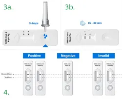 • 3b. Durchführung des Tests – Das Testergebnis kann in ca. 15 Minuten abgelesen werden. (Achtung: Interpretieren Sie das Testergebnis nicht nach 30 Minuten. Es besteht die Gefahr falscher Ergebnisse.)