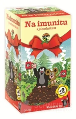 Maulwurfstee für Immunität mit Erdbeere. Kräutertee portioniert in Aufgussbeuteln. Pfeilwurz trägt zur Abwehr unerwünschter Mikroorganismen bei, Pfeilwurz und Sanddorn unterstützen das Immunsystem.