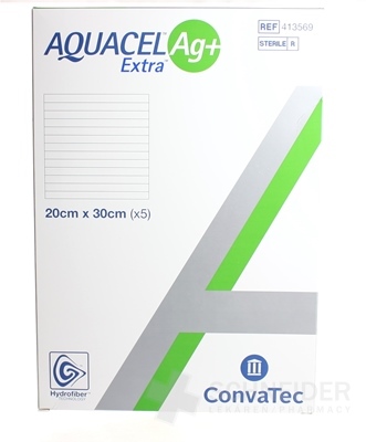 AQUACEL®Ag+Extra™ ist ein weiches, steriles, nicht gewebtes Abdeckmaterial, das aus zwei Schichten Natriumcarboxymethylcellulose besteht, die mit einer Lösung mit 1,2 % Silberionen (antimikrobielles Mittel) unter Zusatz von Dinatriumsalz der Ethylendiamintetraessigsäure (EDTA) imprägniert sind ) und Benzethoniumchlorid (BeCl) sowie verstärkte Fasern aus regenerierter Cellulose.