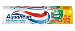Aquafresh Mild'n'Minty Zahnpasta mit mildem Minzgeschmack bietet dreifachen Schutz für: starke Zähne, gesundes Zahnfleisch und frischen Atem. Dank Fluorid trägt es zum Schutz vor im Zahnbelag enthaltenen Zuckersäuren bei, die bei der regelmäßigen Zahnreinigung die Hauptursache für Karies darstellen.