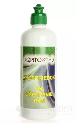 Lösung zur Behandlung von Haut, Schleimhäuten, Haut- und Schleimhautdefekten und Wunden in medizinischen Einrichtungen und im Rahmen der häuslichen Krankenpflege. AQVITOX-D enthält aktives Chlor – eine Mischung aus Perchlorsäure und Natriumhypochlorit (< 0,05 %), Chlordioxid, Chloride.