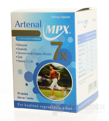 Nahrungsergänzungsmittel, das 7 Wirkstoffe enthält: Glucosaminsulfat, Ingwerextrakt, Chondroitinsulfat, Vitamin C, Vitamin E, Vitamin B3 und Zink.