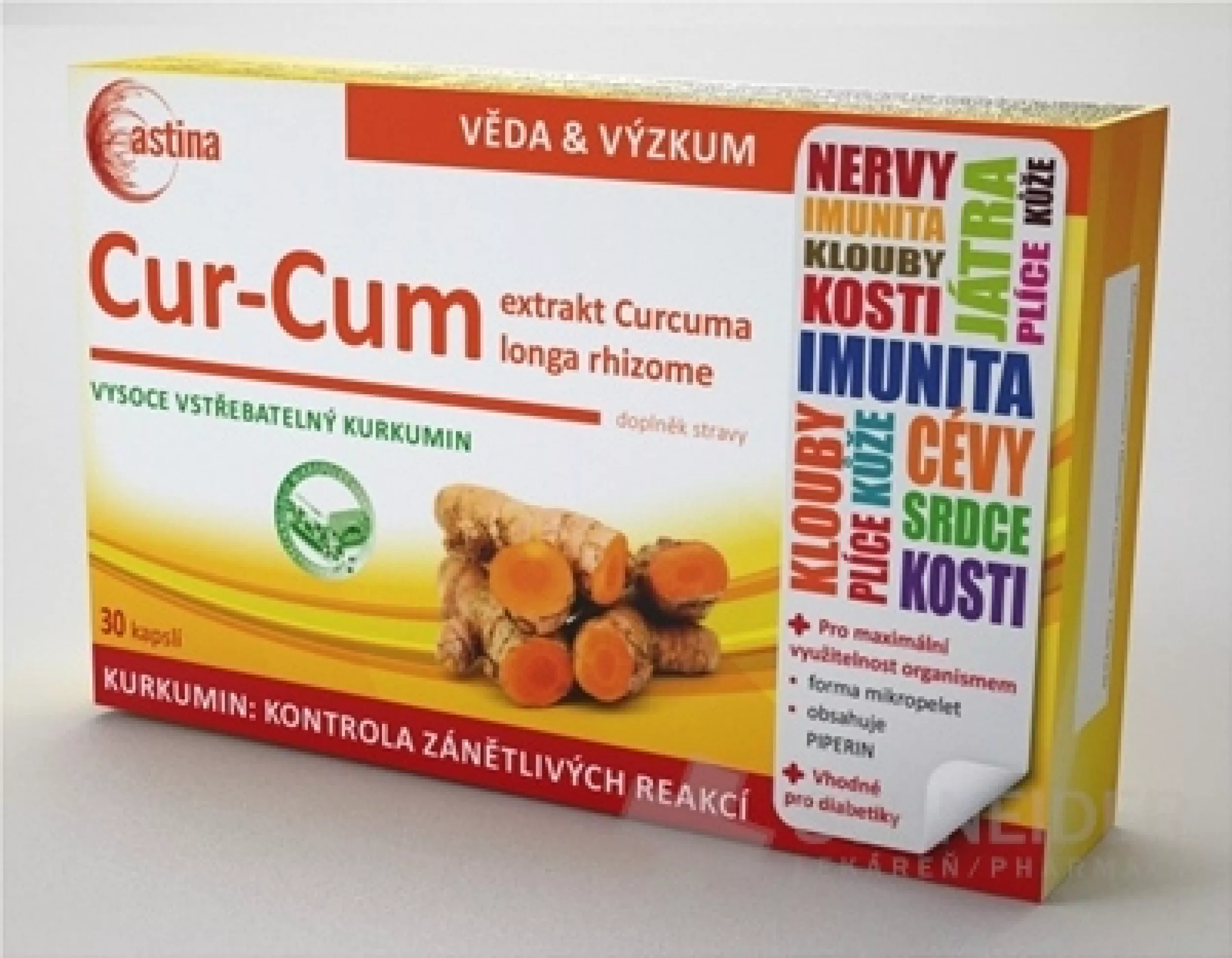 Nahrungsergänzungsmittel in Form von Kapseln mit Curcuma longa-Rhizom-Extrakt mit hohem Curcumin-Gehalt. Für Diabetiker geeignet.