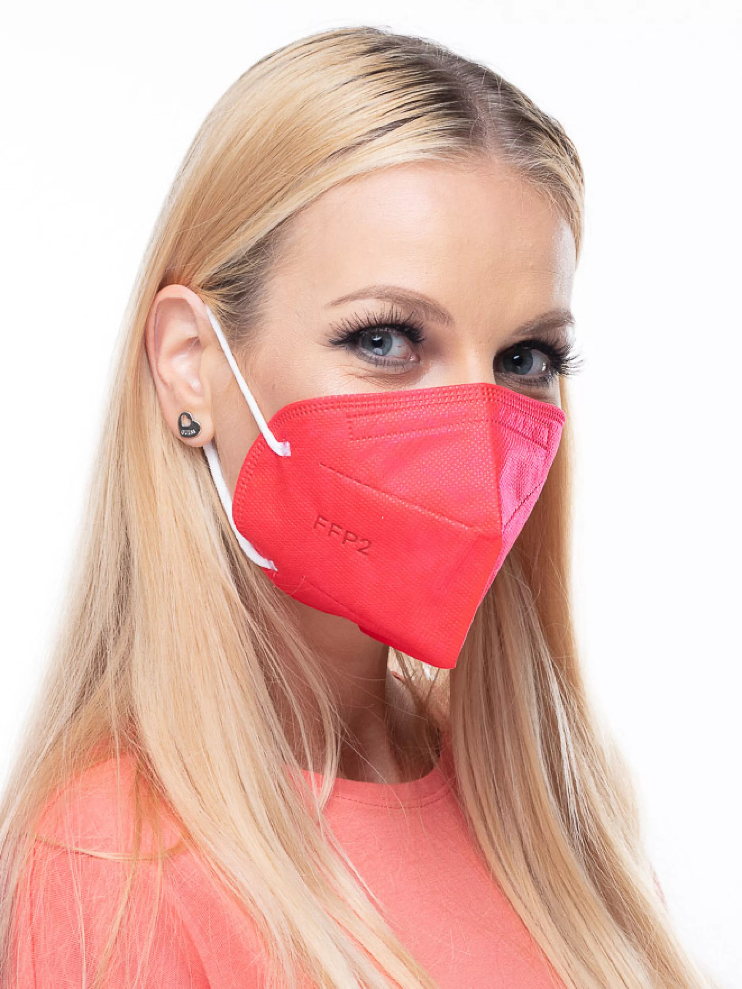 Atemschutzmaske FFP2 ohne Ausatemventil, Farbe Rot, Universalgröße.