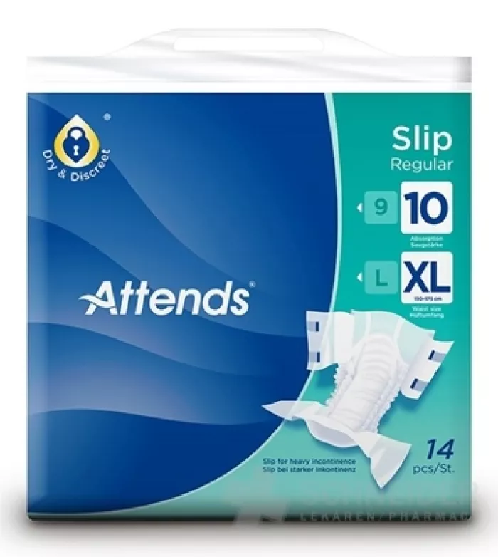 • der saugfähige Kern der Attends Slip Regular Hilfsmittel ist mit dem Attends Odour Protection System ausgestattet, das die Flüssigkeit im Kern einschließt und so verhindert, dass unangenehme Gerüche entweichen,