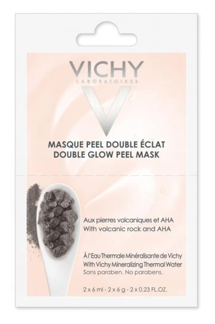Aufhellende Peeling-Maske aus vulkanischem Gestein mit Fruchtsäure (AHA). Es entfernt sanft abgestorbene Zellen und die Haut wird aufgehellt. Enthält Vichy-Thermalwasser.