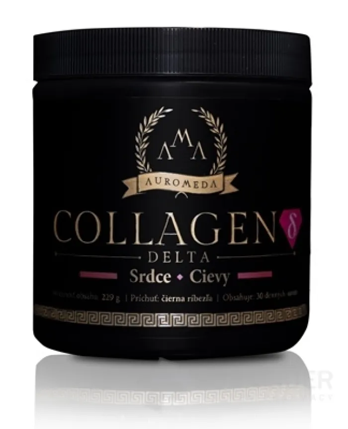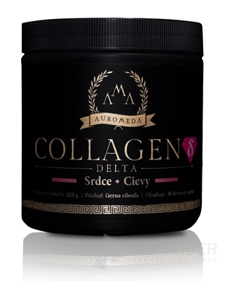 Nahrungsergänzungsmittel in Pulverform mit Kollagen, Vitaminen, Mineralien und Coenzym Q10. Eine Mischung zur Zubereitung eines Getränks mit dem Geschmack schwarzer Johannisbeeren.