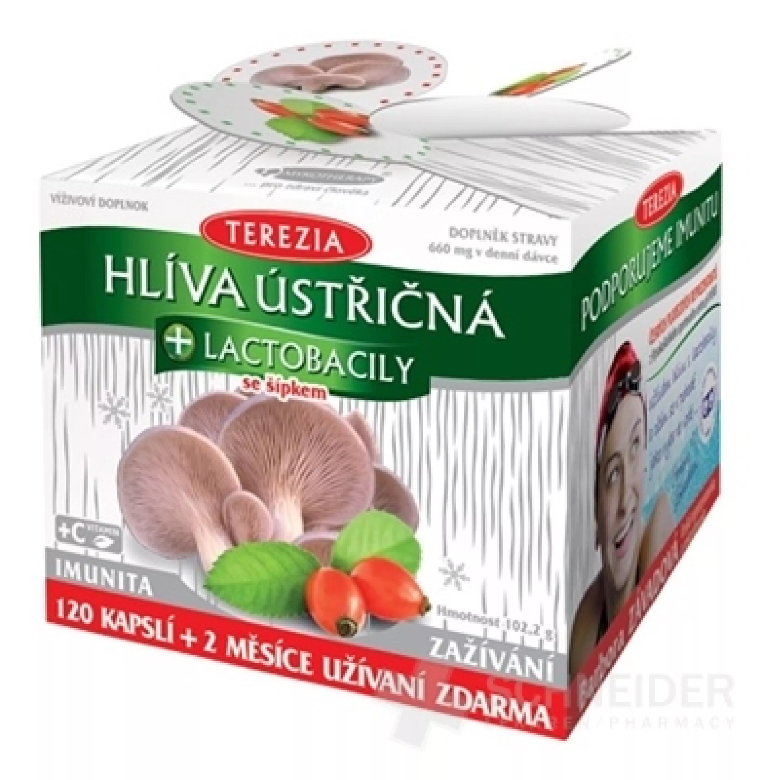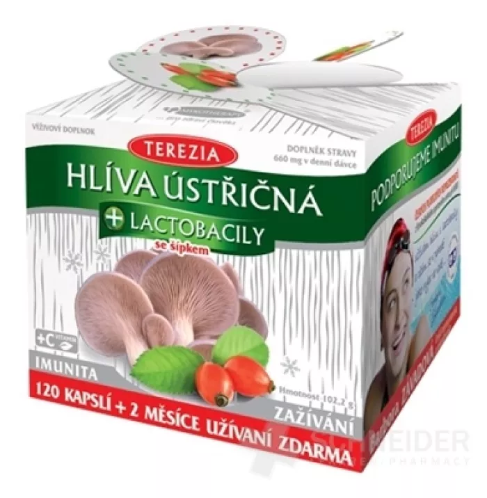 Das Nahrungsergänzungsmittel enthält getrocknetes Austernpilzpulver (Pleurotus ostreatus), Vitamin C, getrockneten Hagebuttenextrakt (Rosa laevigata), Lactobacillus acidophillus und Bifidobacterium bifidum, Bifidobacterium lactis und Inulin.