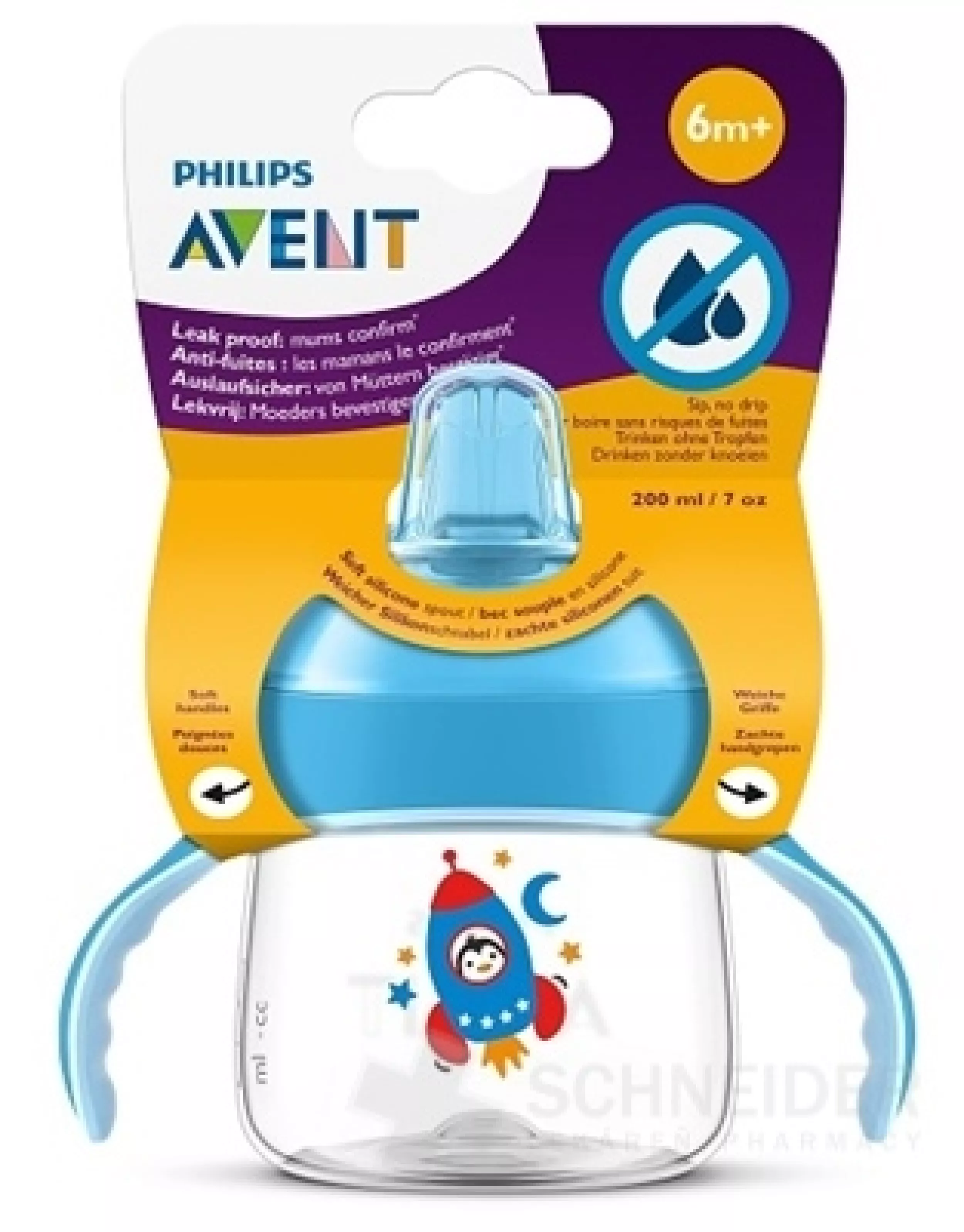 Becher mit einem Volumen von 200 ml, 0 % BPA, mit weichem Silikonmundstück. Für Kinder ab 6 Monaten. Blaue Farbe.