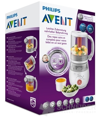 4 in 1 (Dampfgaren, Mischen, Auftauen und Erhitzen) zur Zubereitung gesunder Babynahrung.