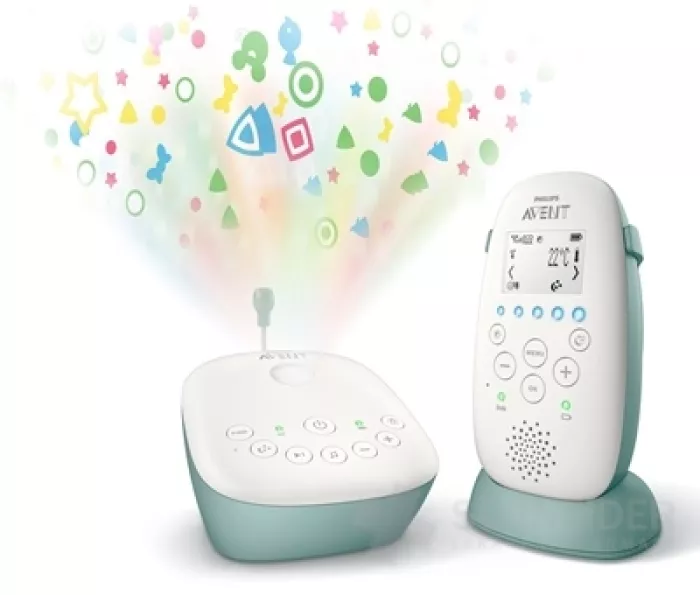 Digitaler Monitor mit DECT-Technologie (Digital Enhanced Cordless Telecommunication) zur Überwachung eines Neugeborenen.