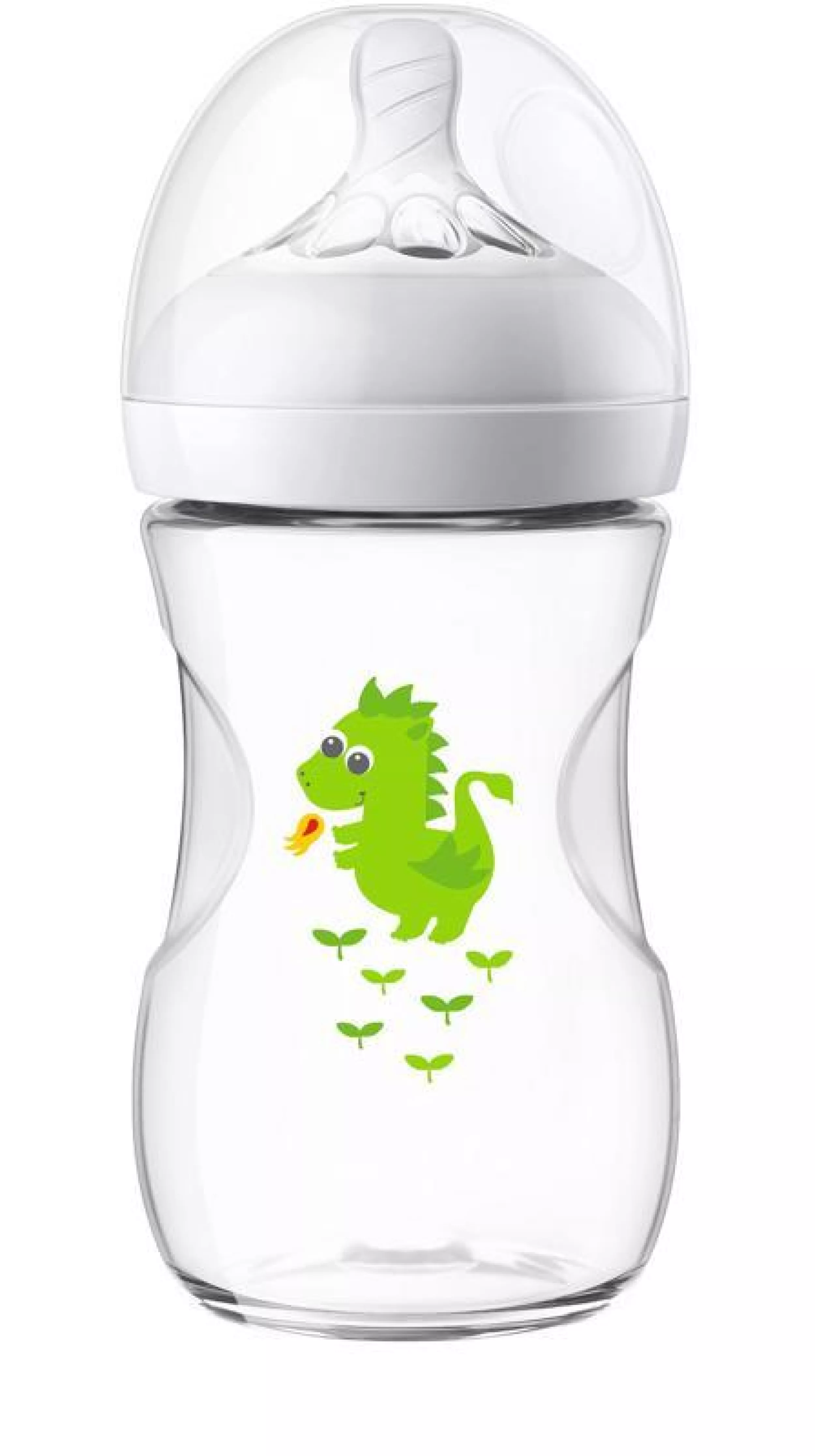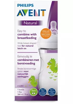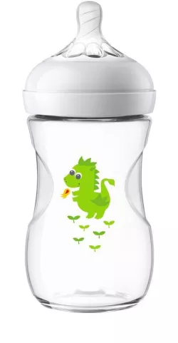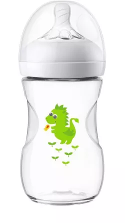 Universelle Babyflasche mit extra weichem Sauger mit langsamem Trinkfluss. Die Flasche besteht aus Polypropylen (PP), das halbtransparent ist und ein Farbbild aufweist. Enthält kein BPA (Bisphenol A).