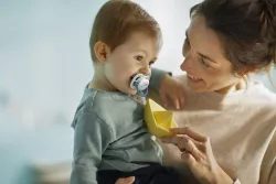 - 0-6 Monate - Silikon - Geben Sie dem Baby das Beste - BPA-frei - Die Scheibe hat extra große Löcher, durch die die Haut des Babys besser atmen kann. - Mit dem Sterilisator/der Tragetasche können Sie den Schnuller Ihres Babys in der Mikrowelle sterilisieren und mitnehmen. Die neuen Ultra-Luftschnuller bieten Babys noch mehr Komfort. Diese Schnuller haben größere Löcher, die eine bessere Luftzirkulation gewährleisten und so die Ansammlung von Speichel hinter der Bandscheibe verhindern. Ultra-Luftschnuller beruhigen nicht nur das Baby, sondern pflegen auch seine empfindliche Haut. Sie sind für 3 Alterskategorien und in Zweierpackungen erhältlich: – 0–6 Monate – 6–18 Monate – 18+ Monate Schnuller beruhigen Babys. Wenn alle Methoden zur Beruhigung des Babys versagen, können Schnuller von AVENT Ihnen helfen, damit Ihr Baby beruhigt wird und friedlich zur Ruhe kommt. Babys mit einem Schnuller schlafen ruhiger, bewegen sich im Schlaf weniger und bleiben vor allem auf dem Rücken, was auch von Kinderärzten empfohlen wird. Die Verwendung eines Schnullers verringert die Abhängigkeit des Babys von der Flasche, verringert das Risiko von Zahnschäden und kann im Vergleich zum langfristigen Daumenlutschen, das übermäßigen Druck auf das Zahnfleisch und die Vorderzähne ausübt, auch das Risiko von Zahnproblemen im späteren Leben verringern. Alle AVENT-Schnuller bestehen aus Silikon. Silikon ist geschmacks- und geruchsneutral, Schnuller haben eine längere Lebensdauer. Benutzen Sie immer einen Schnuller, dessen Größe dem Alter des Kindes entspricht.