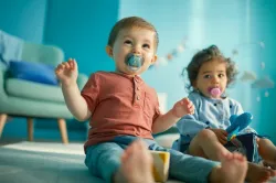 - 6-18 Monate - Silikon - Geben Sie dem Baby das Beste - BPA-frei - FlexiFit-Scheibe für weniger Flecken auf der Haut und gereizte Haut. - Mit dem Sterilisator/der Tragetasche können Sie den Schnuller Ihres Babys in der Mikrowelle sterilisieren und mitnehmen. - Die Farbe des Schnullers weist im Vergleich zum Produktfoto einen Graustich auf. Die neuen Ultrasoft-Schnuller bieten Babys noch mehr Komfort. Diese Schnuller haben mehr Löcher im Ring, die eine bessere Luftzirkulation gewährleisten und so die Ansammlung von Speichel hinter dem Ring verhindern. Ultrasoft-Schnuller beruhigen nicht nur das Baby, sondern pflegen auch seine empfindliche Haut. Sie sind für 2 Alterskategorien und im Zweierpack erhältlich. Ultrasoft-Schnuller werden in 2 Größen hergestellt: - 0-6 Monate - 6-18 Monate Die Schnuller beruhigen das Baby. Wenn alle Methoden zur Beruhigung des Babys versagen, können Schnuller von AVENT Ihnen helfen, damit Ihr Baby beruhigt wird und friedlich zur Ruhe kommt. Babys mit einem Schnuller schlafen ruhiger, bewegen sich im Schlaf weniger und bleiben vor allem auf dem Rücken, was auch von Kinderärzten empfohlen wird. Die Verwendung eines Schnullers verringert die Abhängigkeit des Babys von der Flasche, verringert das Risiko von Zahnschäden und kann im Vergleich zum langfristigen Daumenlutschen, das übermäßigen Druck auf das Zahnfleisch und die Vorderzähne ausübt, auch das Risiko von Zahnproblemen im späteren Leben verringern. Alle AVENT-Schnuller bestehen aus Silikon. Silikon ist geschmacks- und geruchsneutral, Schnuller haben eine längere Lebensdauer. Sechs Löcher in der geformten Scheibe für mehr Komfort für das Kind. Benutzen Sie immer einen Schnuller, dessen Größe dem Alter des Kindes entspricht.