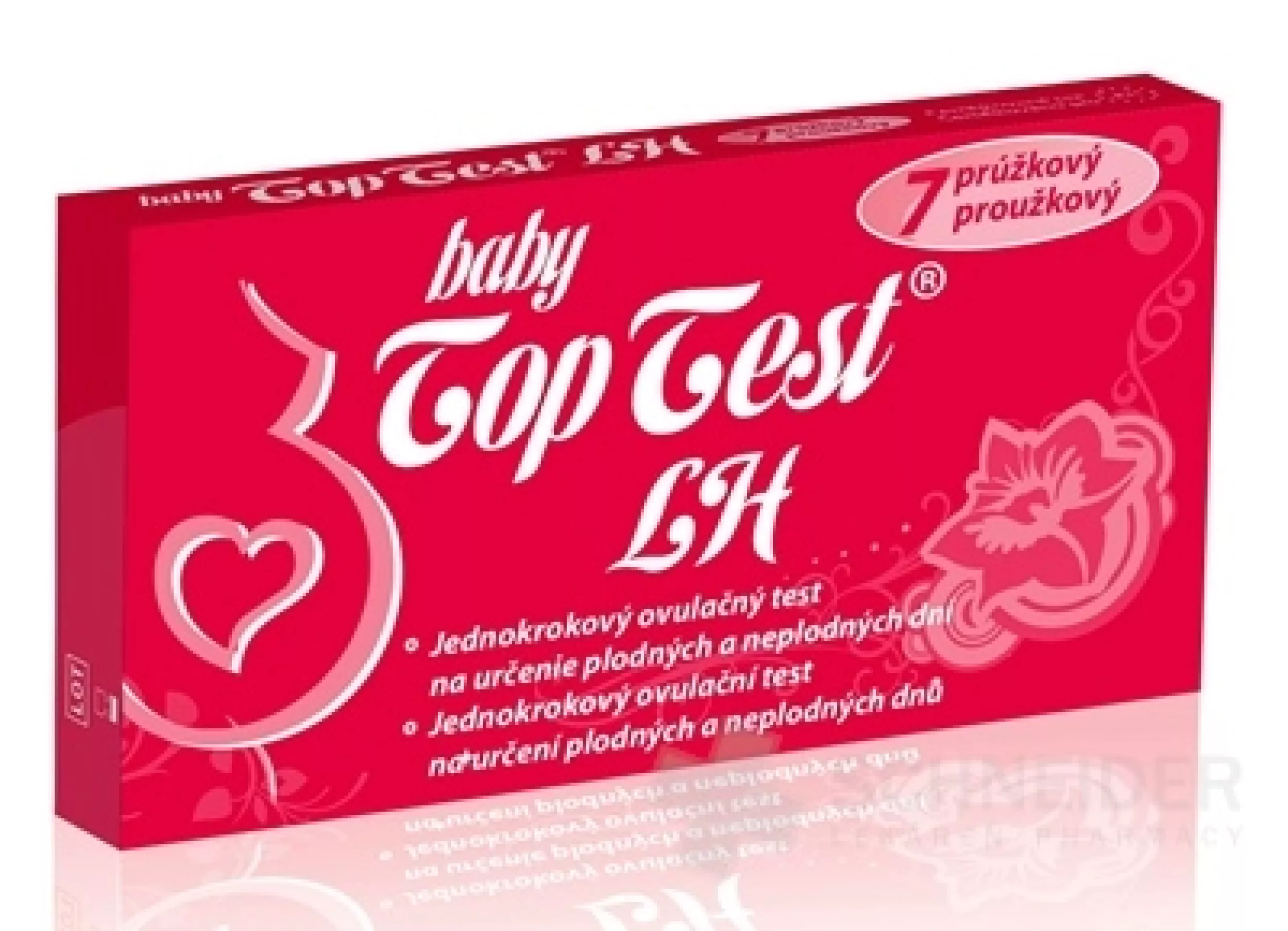 Baby Top Test® einstufiger Ovulationstest zur Bestimmung fruchtbarer und unfruchtbarer Tage. Es wird verwendet, um das Vorhandensein von menschlichem Hormon (LH) in einer Urinprobe zu bestimmen. Packungsinhalt von 7 Tests in Form eines Streifens.