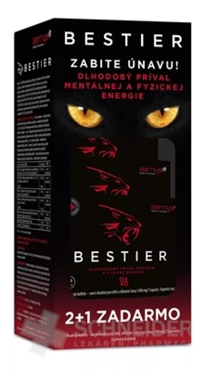 Barny's® BESTIER ist ein kombiniertes Kräuter- und Vitamin-Nahrungsergänzungsmittel, bestehend aus einem starken Extrakt mehrerer Kräuter (Withania, Maca, Guarana und Ginseng), Koffein und den Vitaminen B6 und B12, die zur Verringerung von Erschöpfung und Müdigkeit beitragen (EFSA: ID 78). , 108).