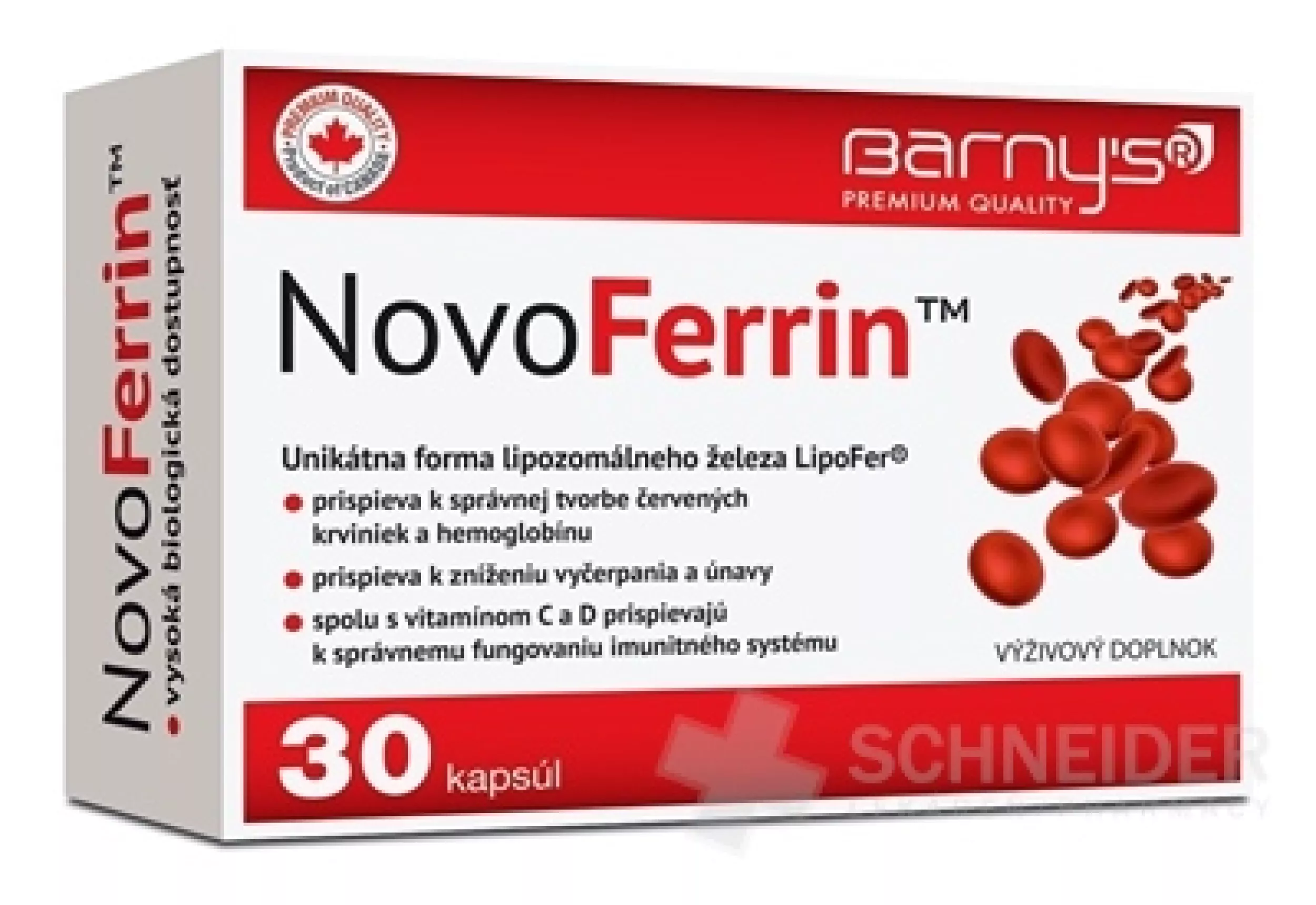 Barny's NovoFerrin™ ist ein kombiniertes Mineral- und Vitamin-Nahrungsergänzungsmittel, das eine einzigartige Form des liposomalen Eisens LipoFer® sowie die Vitamine C und D enthält. Eisen mit hoher Bioverfügbarkeit trägt zur ordnungsgemäßen Bildung roter Blutkörperchen und Hämoglobin sowie zur ordnungsgemäßen Sauerstoffübertragung im Blut bei Körper und zur Verringerung von Erschöpfung und Müdigkeit. Mit Vitamin D spielen sie eine Rolle bei der Zellteilung und mit Vitamin C tragen sie zum korrekten Stoffwechsel bei, der für die Energiegewinnung wichtig ist. Eisen, Vitamin C und D tragen zur ordnungsgemäßen Funktion des Immunsystems bei. Vitamin C erhöht die Eisenaufnahme.