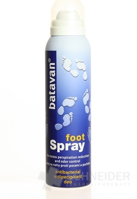 Spray, Antitranspirant für Füße mit mildem Duft, das sowohl für Männer als auch für Frauen geeignet ist. Es enthält Wirkstoffe, die das Schwitzen und die Geruchsbildung begrenzen. Es ist alltagstauglich. Dank des Vakuumsprays ist die Anwendung sehr einfach und angenehm.