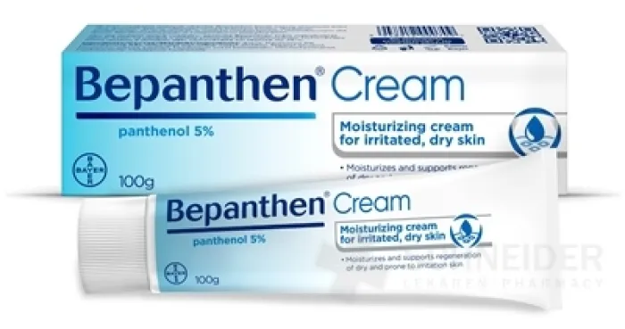 Feuchtigkeitscreme für trockene und gereizte Haut mit 5% Panthenol.