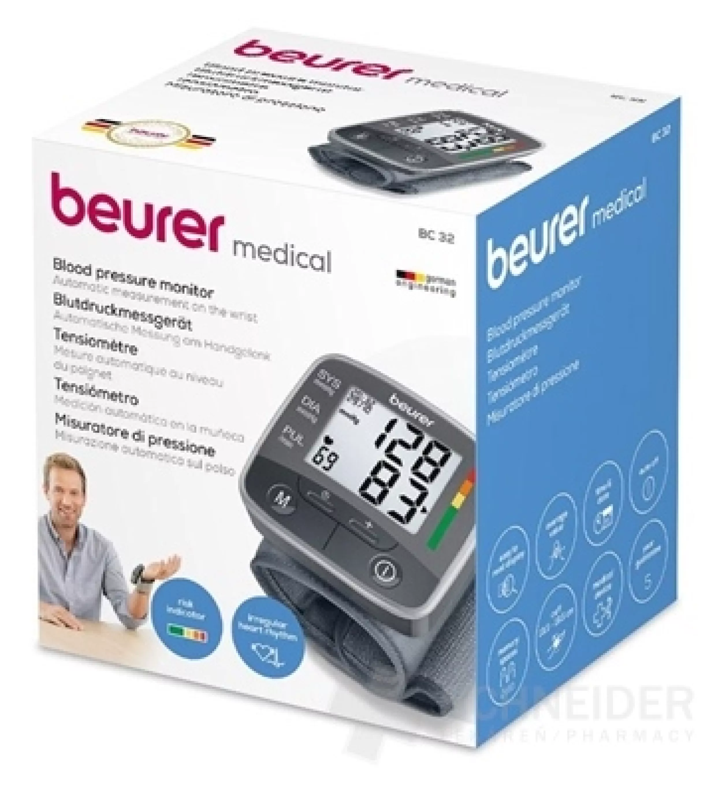 Handgelenk-Blutdruckmessgerät, WHO, Arrhythmieerkennung, Durchschnittszählung, 2 x 60 Speicher
