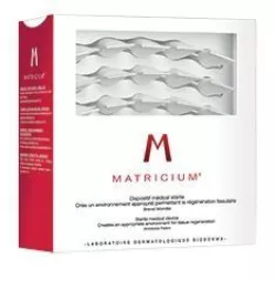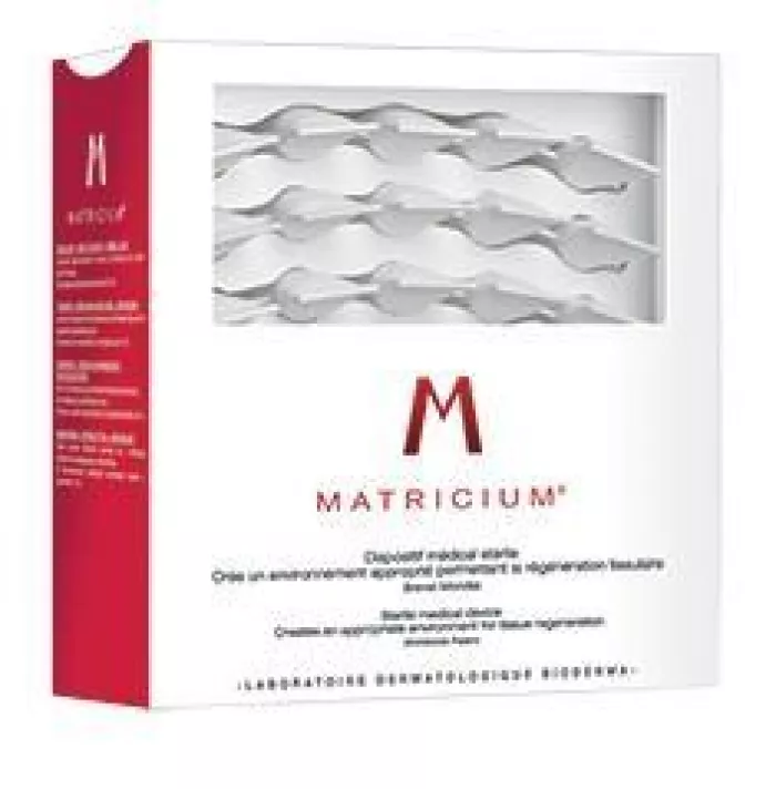 Matricium® stellt das ideale Milieu der Haut wieder her und unterstützt so den Prozess der natürlichen Regeneration des Hautgewebes*. Es enthält ausschließlich Stoffe, die natürlicherweise in der Haut vorkommen und für Leben, Funktion und Regeneration unerlässlich sind. Die Haut erhält ihre ursprüngliche biologische Funktion zurück und wird mit allen notwendigen Mitteln für eine echte Hautregeneration ergänzt. Es handelt sich nicht um ein Kosmetik- oder Arzneimittel, sondern um ein Medizinprodukt. Seine 100 % biomimetische Zusammensetzung entspricht den Standards der Pharmaindustrie und garantiert höchste dermatologische Sicherheit. Antioxidativ, spendet Feuchtigkeit und schützt, unterstützt die postoperative Behandlung. Sterile Einzelampullen, ohne Konservierungsstoffe, ohne Parabene, ohne Parfüm, enthalten keinen Alkohol, hohe Verträglichkeit und Sicherheit, hypoallergen, nicht komedogen.