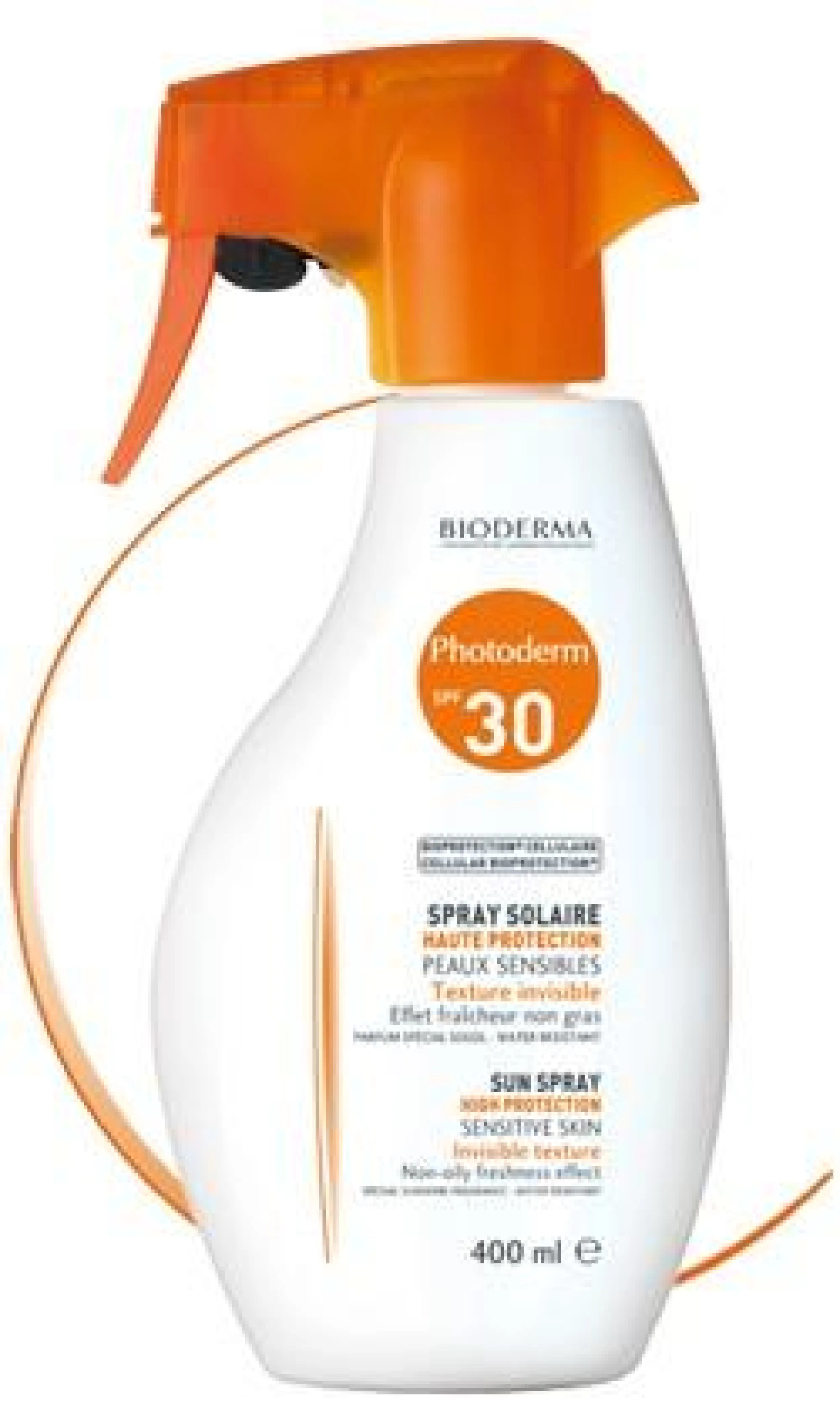 Das im Spray Photoderm Family SPF 30 enthaltene neue Strahlenfiltersystem, das von der BIODERMA-Forschung entwickelt wurde, garantiert einen so kontinuierlichen und gleichmäßigen UVA- und UVB-Schutz, wie er bisher noch nicht erreicht wurde. Die einzigartige Wirkung des Sprays gegen „extreme UVA“-Strahlung verlangsamt die vorzeitige Hautalterung und beugt unerwünschten Reaktionen auf Sonnenlicht vor. Der maximale Anti-UVB-Schutz des Produkts schützt die Haut wirksam vor Verbrennungen und damit vor der möglichen Gefahr wiederholter und längerer Sonneneinstrahlung. Der im Präparat enthaltene patentierte CELL BIOPROTECTION®-Komplex schützt die Zellen sofort vor den schädlichen Auswirkungen der UV-Strahlen und stimuliert gleichzeitig die Abwehrmechanismen der Haut und schützt ihre DNA. Die seidige, sehr leichte Textur des Sprays „New sensation“ Photoderm Family SPF 30 verleiht der Haut ein angenehmes Gefühl und außergewöhnliche Weichheit. Das Photoderm Family SPF 30 Spray ist beim Auftragen völlig farblos, lässt sich sehr leicht verteilen und hinterlässt keine ölige Schicht. Photoderm Family SPF 30 Spray verursacht keine Komedonenbildung und ist wasserfest. Das Photoderm Family SPF 30 Spray enthält kein Parfüm und ist hervorragend verträglich.
