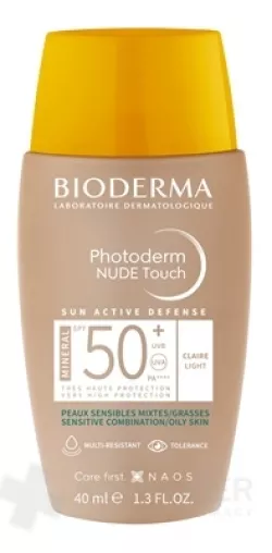 Sonnenschutz LSF 50+ mit hellem Farbton für empfindliche, gemischte bis fettige Haut.