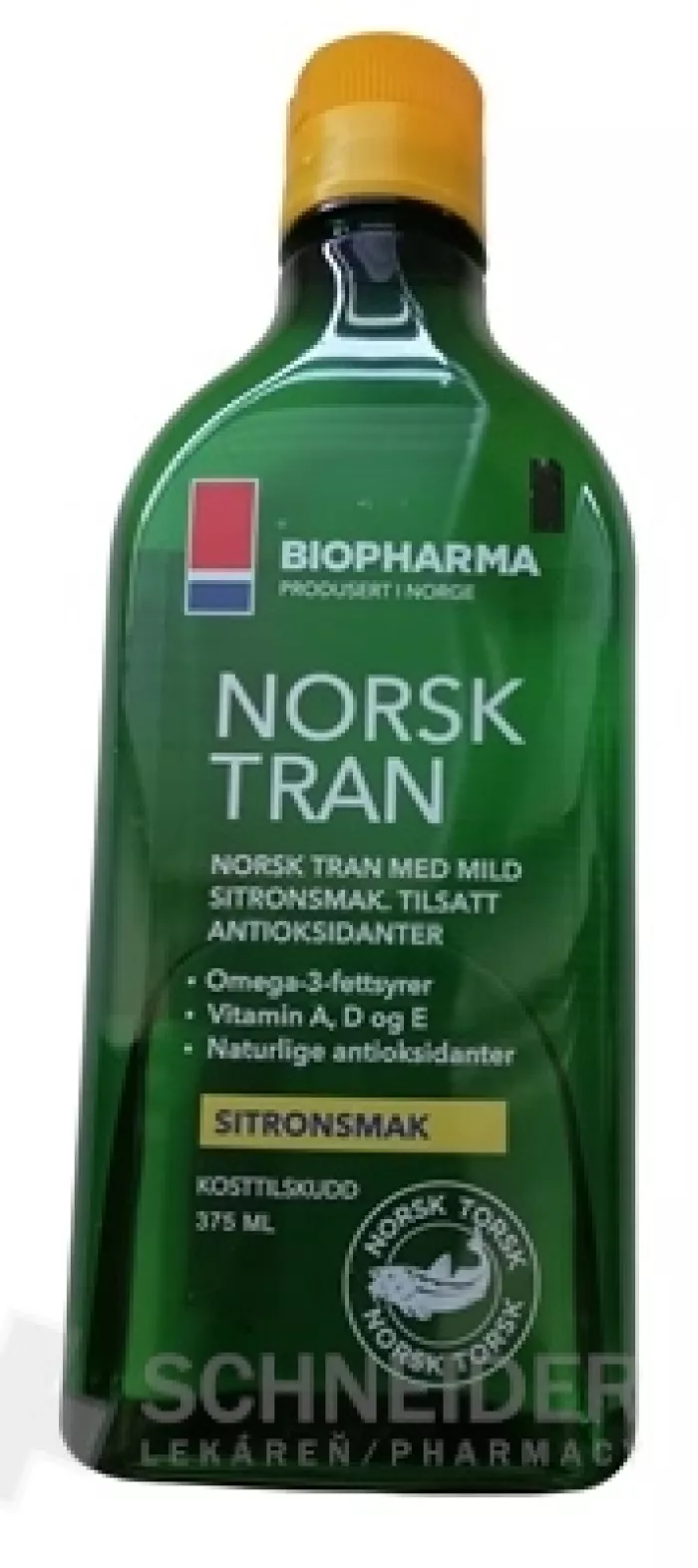 Lebertran mit Zitronen-Kräuter-Geschmack. Es enthält die Omega-3-Fettsäuren EPA, DHA und die Vitamine A, D, E sowie Extrakte aus Oregano, Thymian, Nelken, Rosmarin und natürlichem Zitronenaroma.