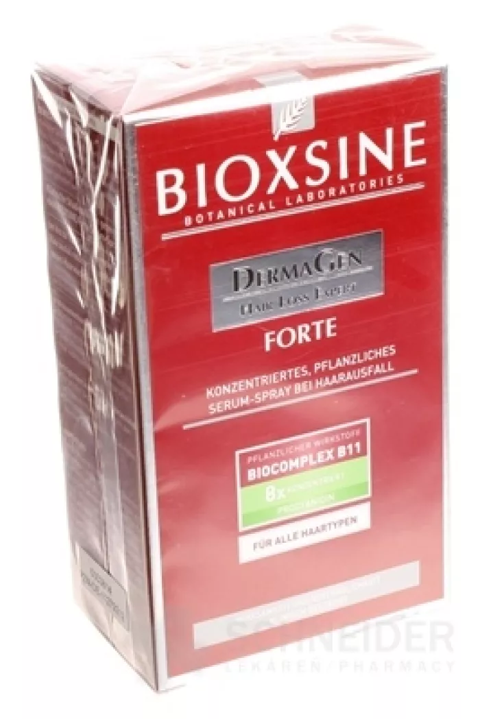 Bioxsine Forte Spray enthält Biocomplex B11 (Vitamine: A, B1, B2, B5, B6, B9, Biotin, Mineralien: Kupfer, Zink, Eisen, Magnesium, Kalium, Kalzium und ungesättigte Omega6,9-Fettsäuren, Beta-Sitosterin).