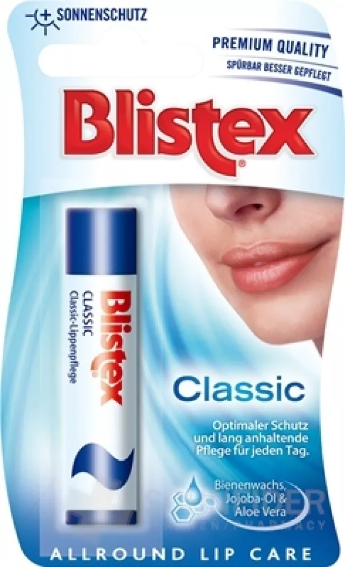 Blistex Classic – ein klassischer Pflegestift enthält spezielle Wirkstoffe, wie feuchtigkeitsspendende Aloe Vera und schützendes Vitamin E. Wertvolles Jojobaöl und natürliches Bienenwachs pflegen die Lippen besonders sanft.