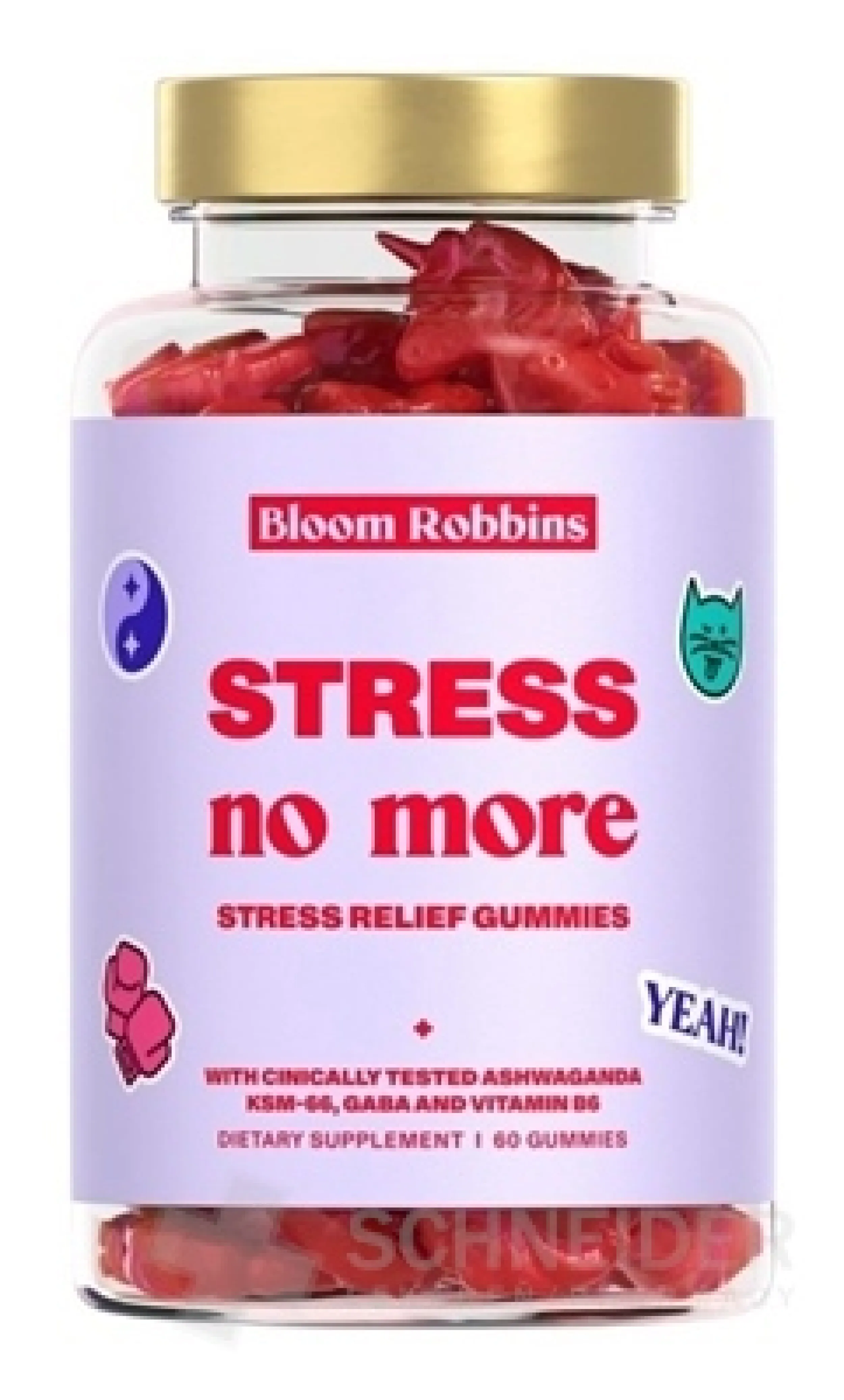Nahrungsergänzungsmittel. Enthält GABA (Gamma-Aminobuttersäure), Vitamin B6, Ashwagandha-Wurzelextrakt und Geißblattextrakt.