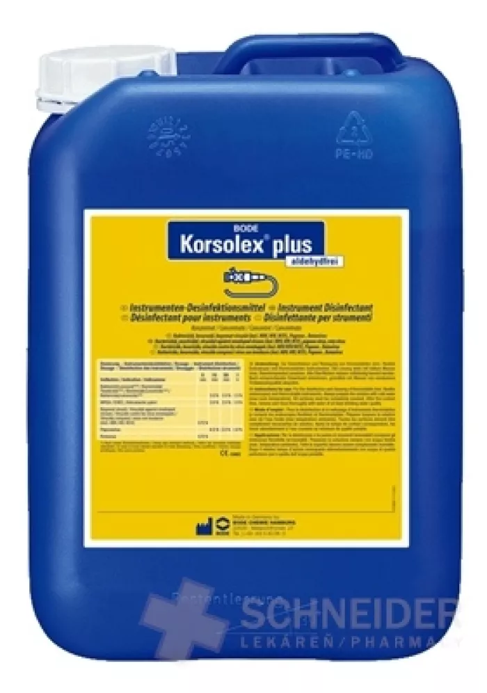 Korsolex® plus ist ein modernes aldehydfreies Präparat zur Desinfektion medizinischer Instrumente, das eine hervorragende Reinigungswirkung mit einem breiten Einsatzspektrum und hoher Materialverträglichkeit verbindet und daher zur Desinfektion im Zusammenhang mit der Reinigung thermostabiler und thermolabiler Instrumente eingesetzt werden kann (flexible Endoskope) manuell oder im Umlaufverfahren sowie im Ultraschallbad.
