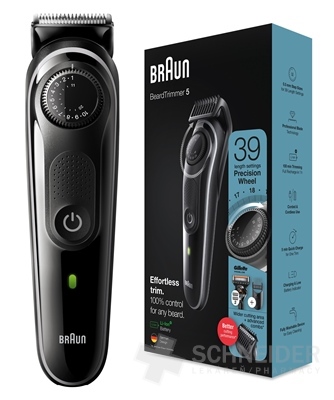 Braun 5 Bartschneider BT5342, Herren-Bartschneider, Haarschneider, dauerhaft scharfe Klingen, 39 Längeneinstellungen, Schwarz/Hellgrau
