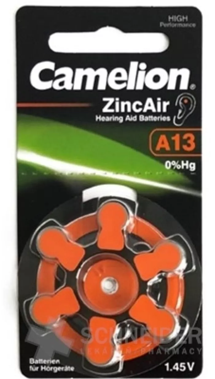 Batterien für Hörgeräte vom deutschen Hersteller Camelion Batterien. Größe A13 (Markierung orange). Blister 6 Stk. Zur einmaligen Verwendung.