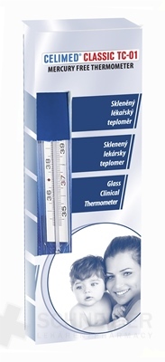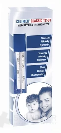 Klassisches quecksilberfreies Thermometer aus medizinischem Glas mit Gallium.