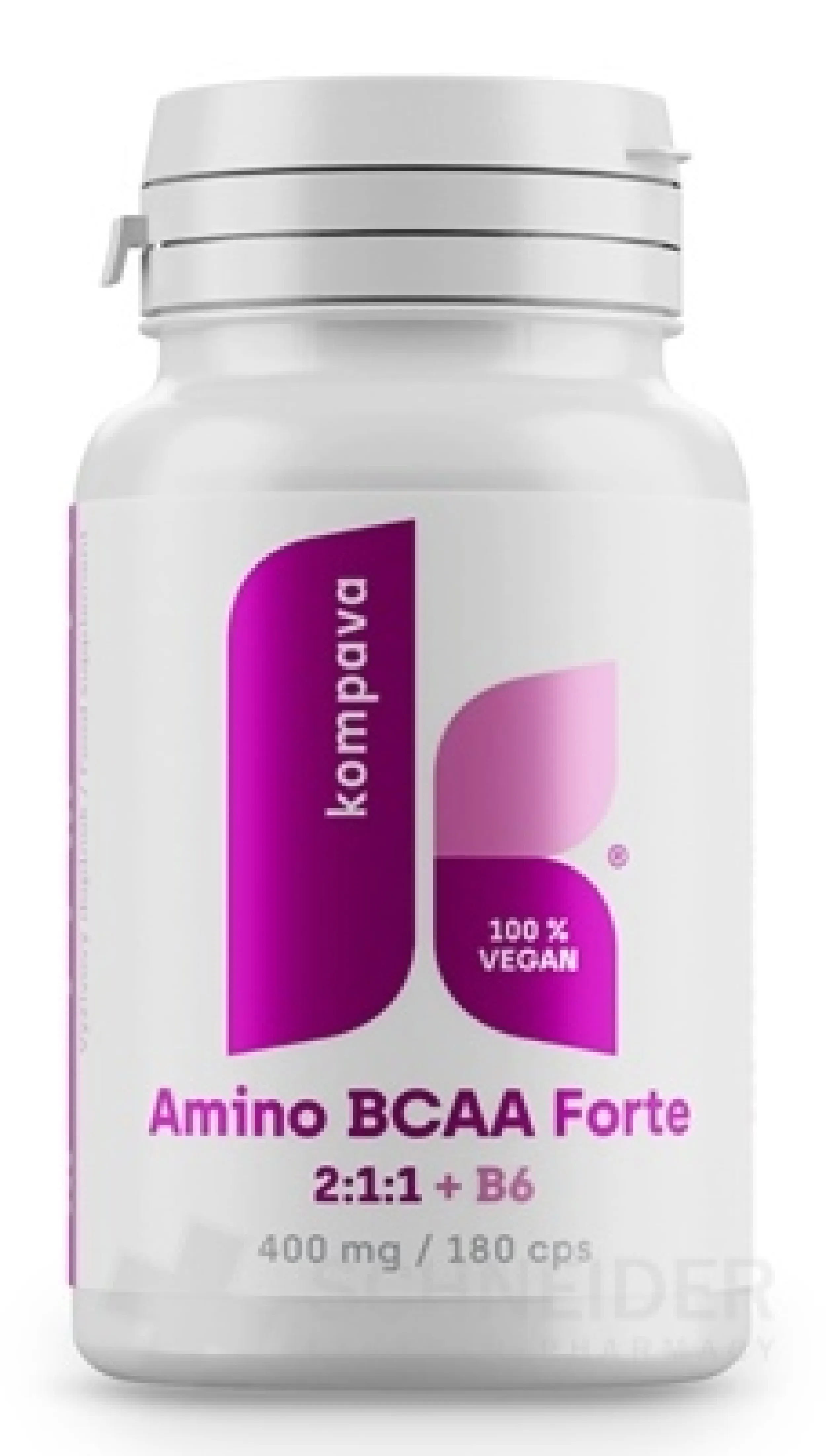 Nahrungsergänzungsmittel, Mischung aus den Aminosäuren L-Leucin, L-Isoleucin, L-Valin im Verhältnis 2:1:1 (400 mg in 1 Kapsel) und Vitamin B6 (2 mg in 1 Kapsel).