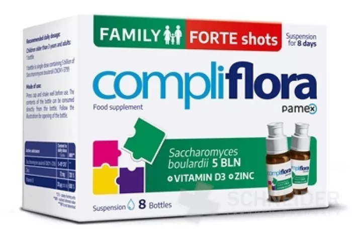 Nahrungsergänzungsmittel. Innovative Verpackung in Form einer Suspension, die Lebendhefe Saccharomyces boulardii, Zink und Vitamin D enthält und einen angenehmen Pfirsichgeschmack hat. Zink und Vitamin D tragen zur ordnungsgemäßen Funktion des Immunsystems bei. Die Federung ist für Kinder ab 3 Jahren und Erwachsene geeignet.