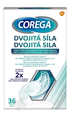 Corega-Reinigungstabletten mit doppelter Stärke sind Tabletten zur Reinigung von Zahnprothesen.