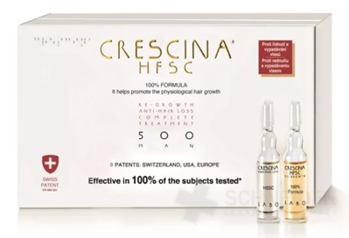 - CRESCINA RE-Growth HFSC 100 % (braune Ampullen) enthält den patentierten Crescina Re-Growth-Kern (Cystein, Lysin und Glykoprotein), der das physiologische Haarwachstum unterstützt. Einige der patentierten Wirkstoffe (Cystein, Lysin, Glykoprotein und der Stem-Engine-Komplex) sind an bestimmte Trägerstoffe gebunden, die ihre allmähliche, kontinuierliche Freisetzung in die Haarhaut ermöglichen. Die ordnungsgemäße Funktion der Stammzellen im Haarfollikel ist für das Wachstum neuer Haare von entscheidender Bedeutung.