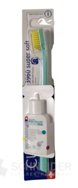 Ein Produktset, das die superweiche Zahnbürste CURAPROX CS 3960 und eine Probe Perio PLus Balance CHX 0,05 % Mundwasser enthält.