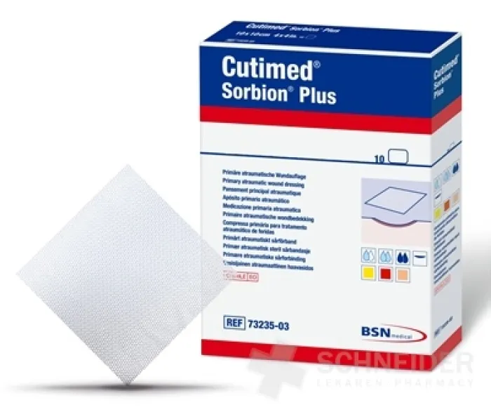 Cutimed Sorbion Plus ist für die Behandlung von nässenden Wunden wie Druckgeschwüren, diabetischem Fuß, nässendem Ulcus cruris (Unterschenkelgeschwür), sekundär heilenden nässenden Wunden, Verbrennungen zweiten Grades, eitrigen Hautfisteln, ulzerativen Karzinomen und ähnlichen nässenden Wunden indiziert. Es wird auch bei Wunddehiszenz eingesetzt.