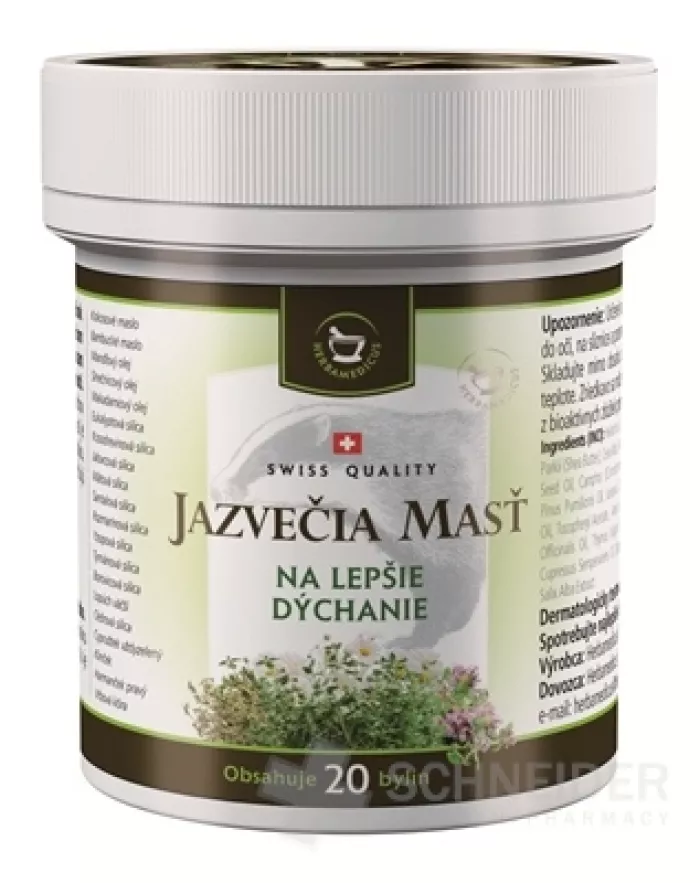 Kräutersalbe ersetzt die bewährte Wirkung von nicht verfügbarem Dachsschmalz, das in der traditionellen Volksmedizin als Brustbalsam zur besseren Linderung von Husten bei Grippe und Erkältungen eingesetzt wurde. Das Präparat enthält eine harmonisch ausgewogene Mischung aus 20 Sorten Kräuterextrakten in BIO-Kokosnussbutter. Dachssalbe eignet sich zum Einreiben und Massieren von Brust, Nacken, Nacken, Rücken oder Stirn und Schläfen.